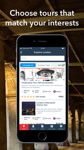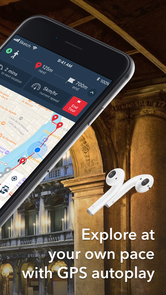بمجرد اختيار جولة، يمكنك اختيار المدة ونقطة البدء وسيقوم التطبيق بتوجيهك على طول الطريق. ستبدأ جولتك من حيث تريد، وستوجهك طوال الطريق. لا يهم ما تراه الآن. يمكنك الاستماع إلى الجولة الصوتية على الهاتف الذكي أو الكمبيوتر اللوحي، أو حتى سطح المكتب أو الكمبيوتر المحمول. يمكنك استخدام سماعات الرأس أو مكبرات الصوت المدمجة في جهاز الكمبيوتر الخاص بك.